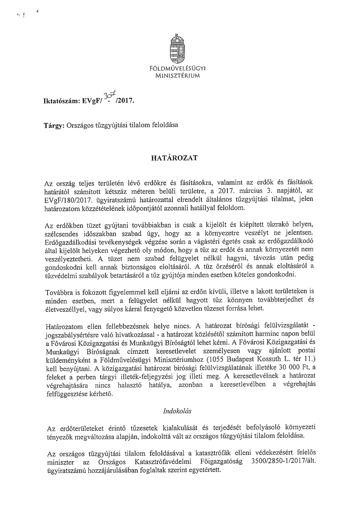 Tájékoztató – Országos tűzgyújtási tilalom feoldása
