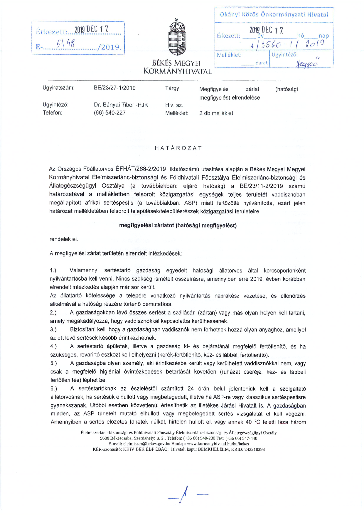 Megfigyelési zárlat (hatósági megfigyelés) elrendelése