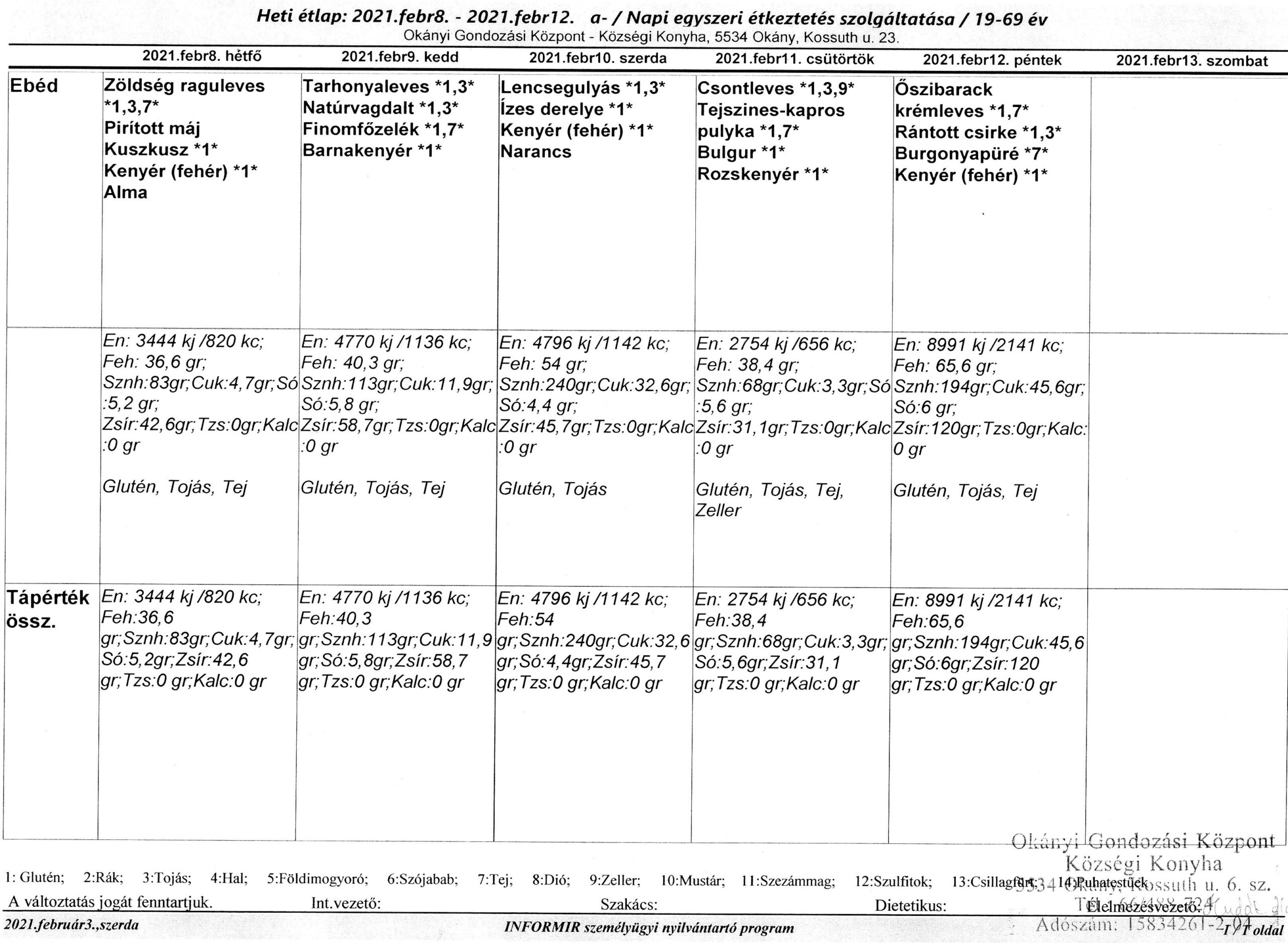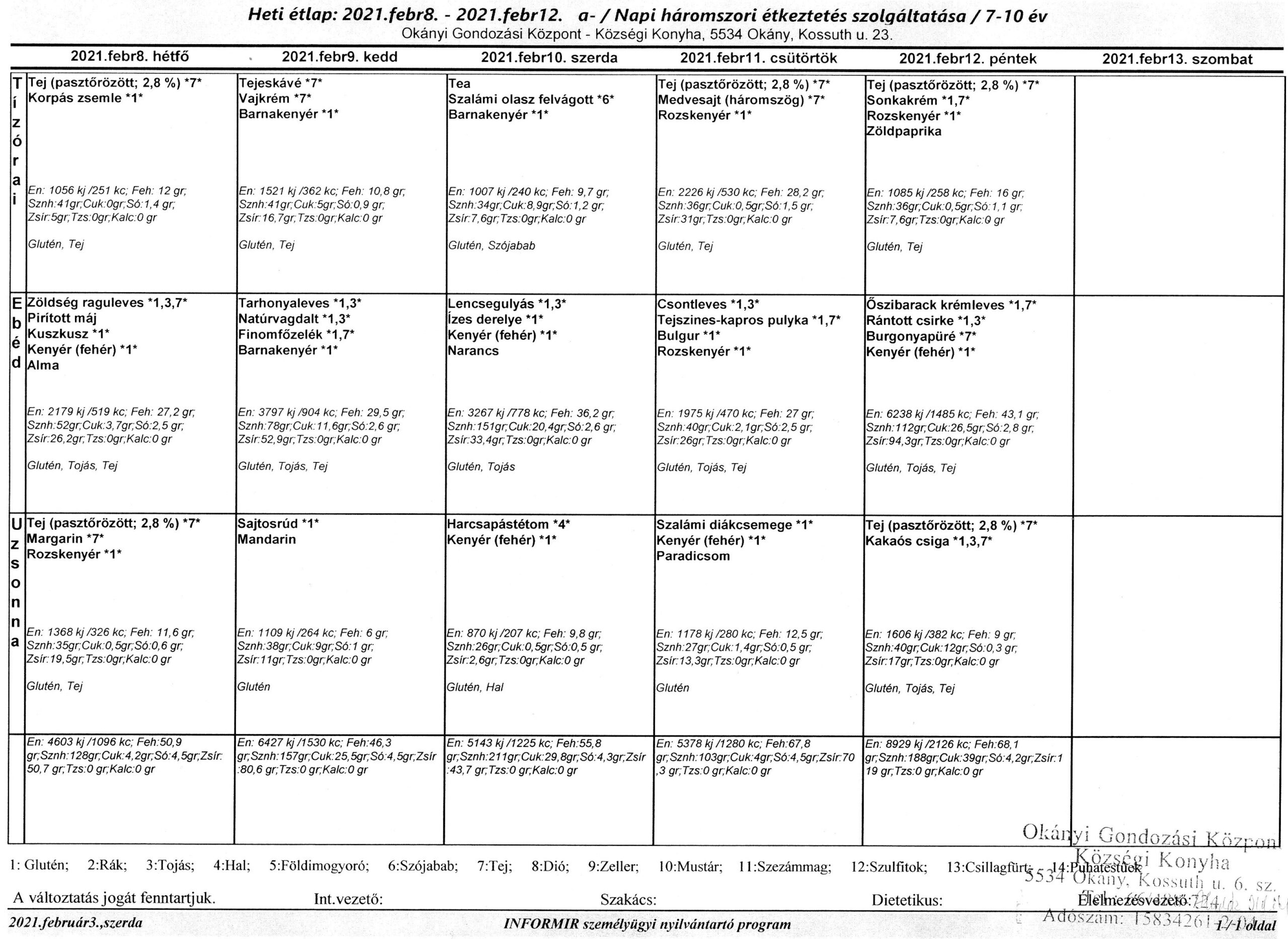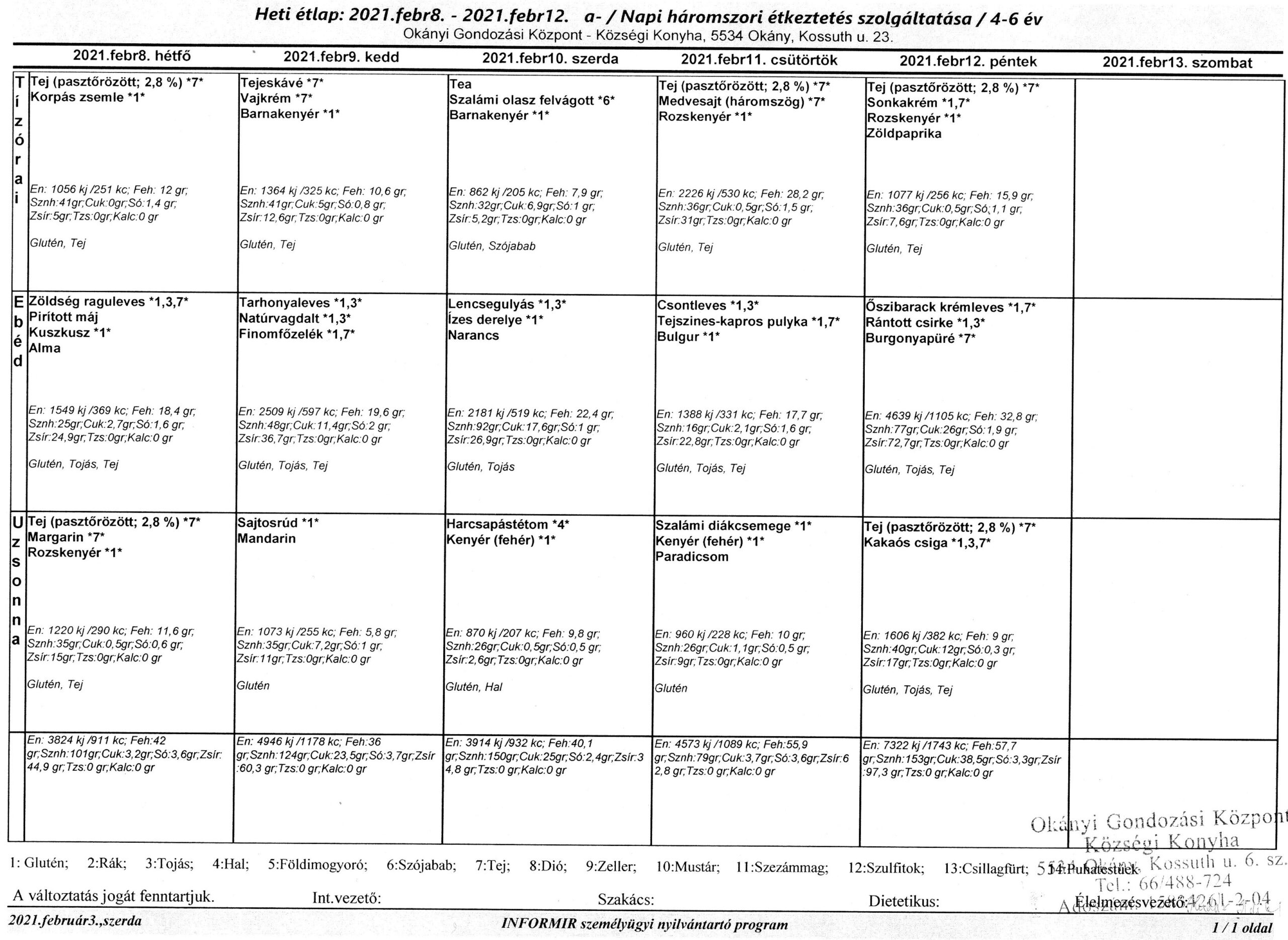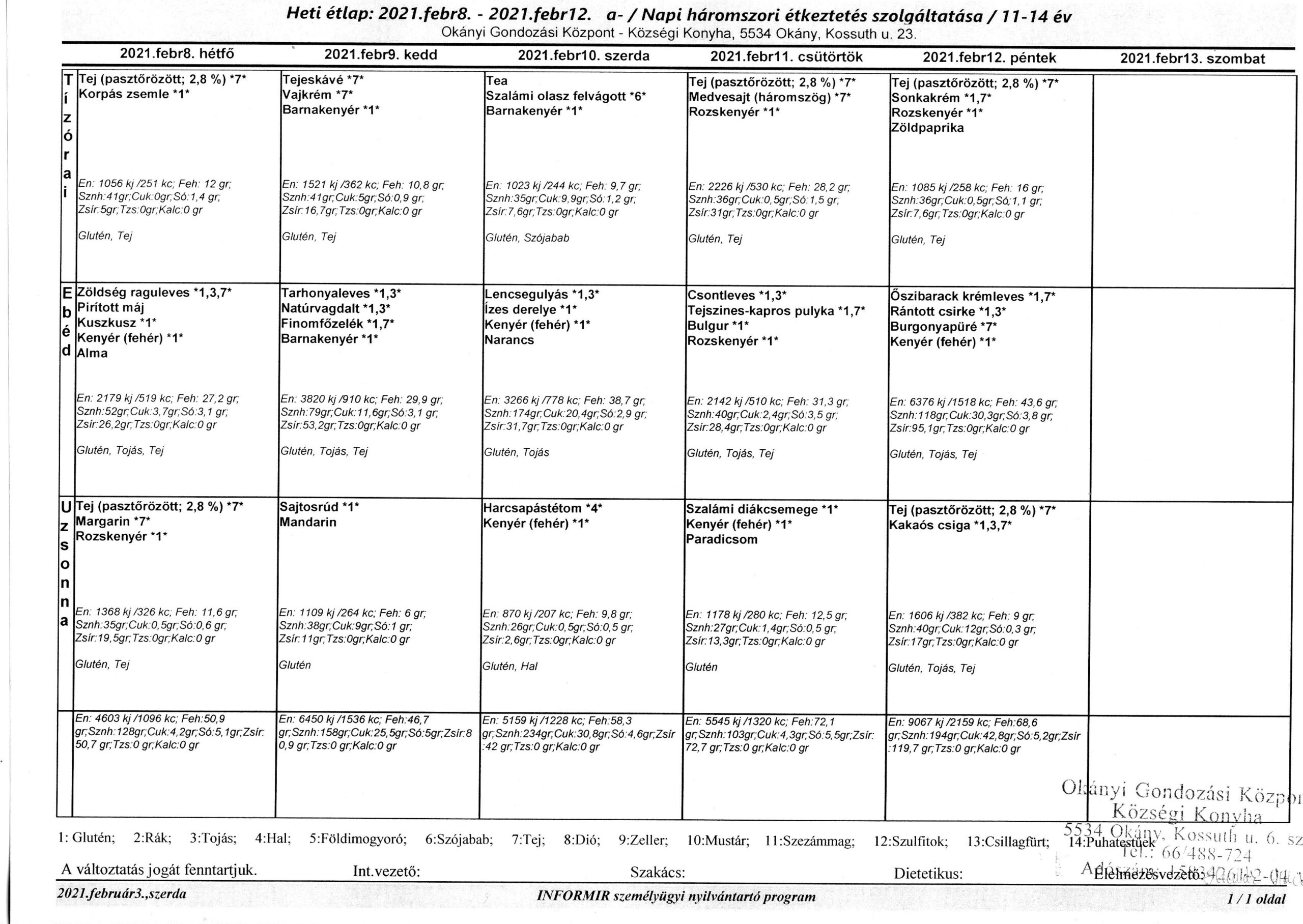 Konyha Étlap korosztályos bontásban 2021.02.08. – 2021.02.12.