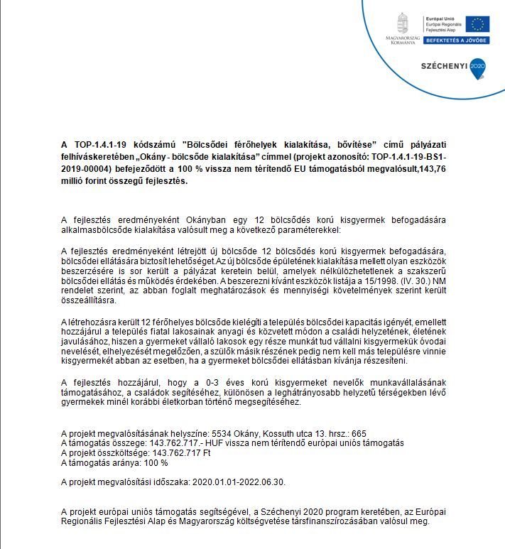 Okány bölcsőde kialakítása TOP-1.4.1-19-BS1-2019-00004