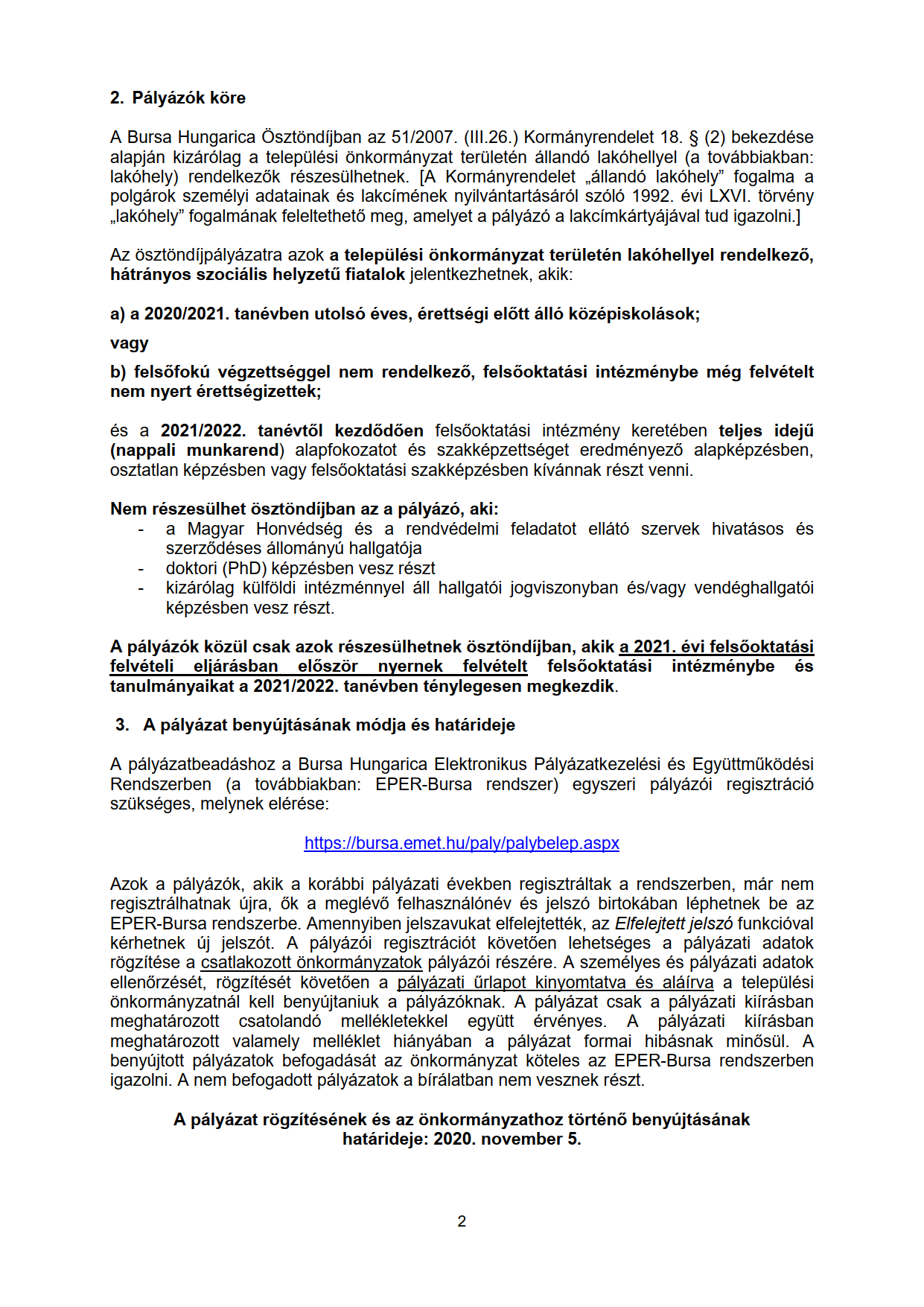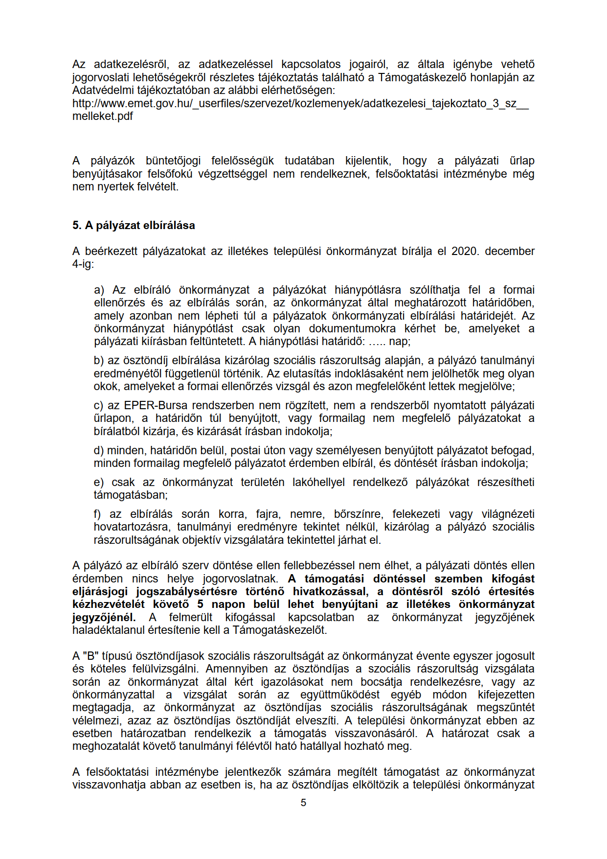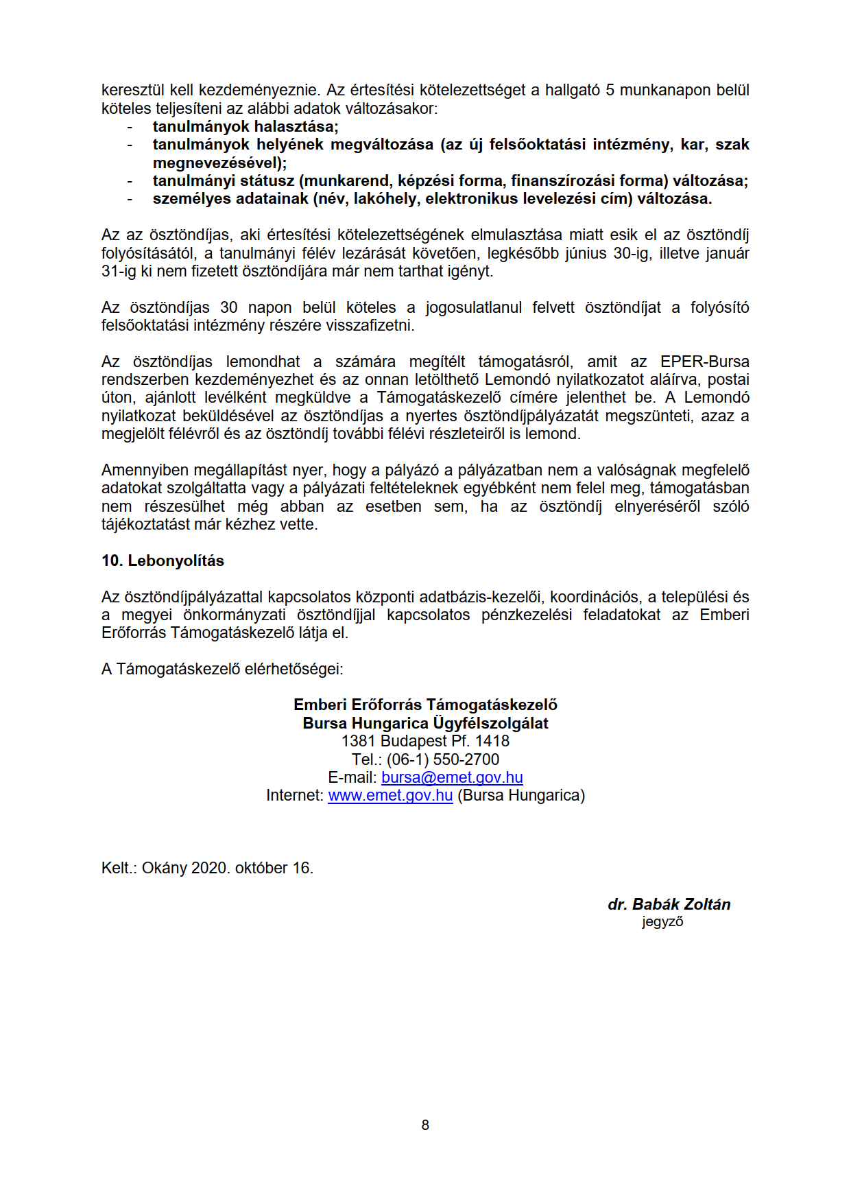 Bursa Hungarica Felsőoktatási Önkormányzati Ösztöndíjpályázat módosítás