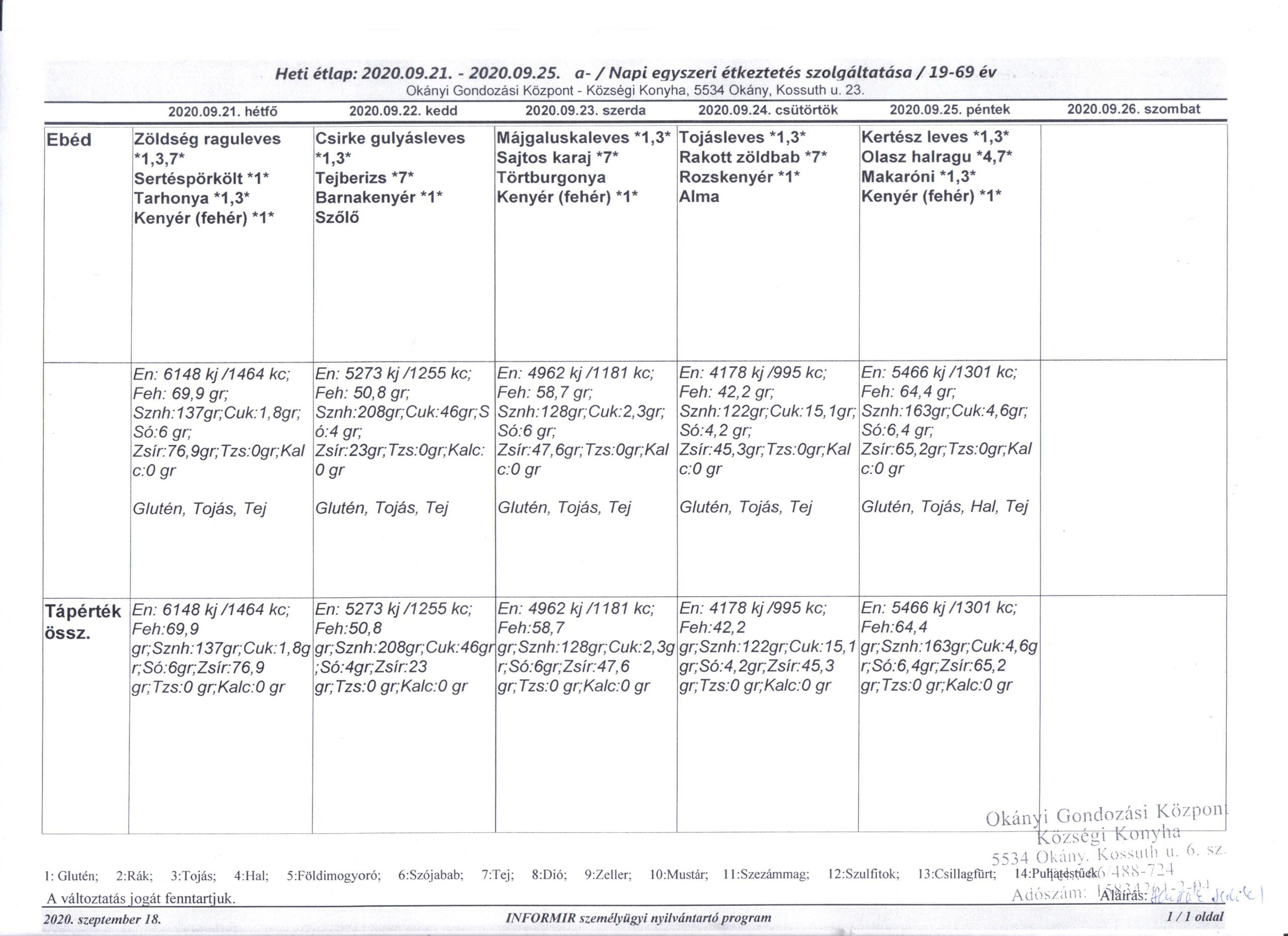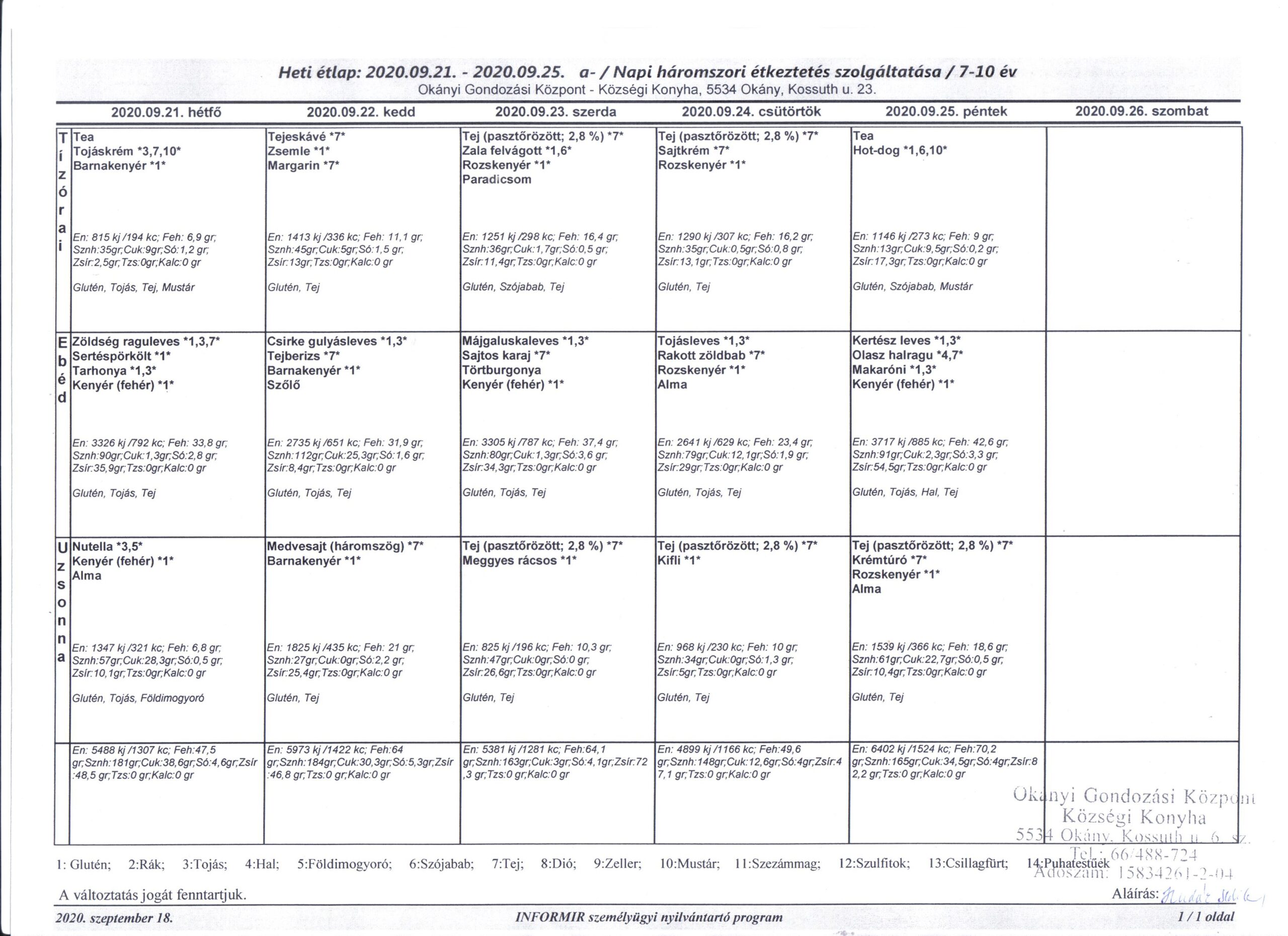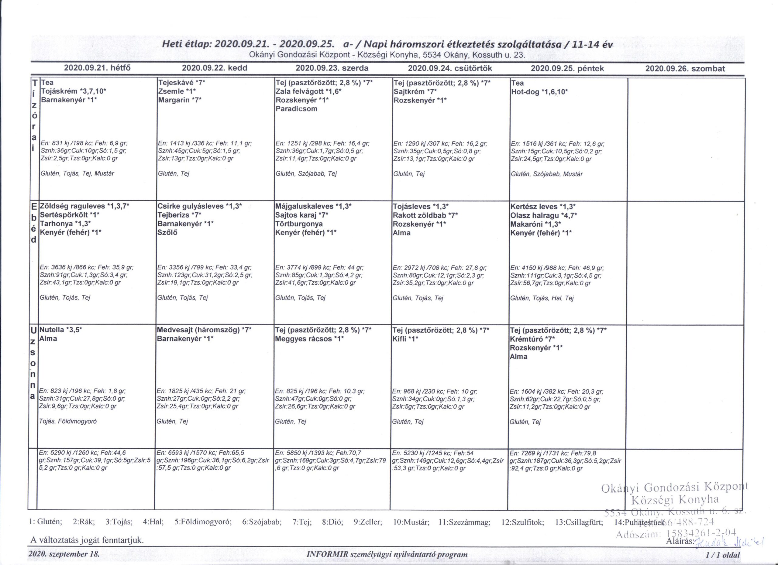 Konyha Étlap korosztályos bontásban 2020.09.21. – 2020.09.25.