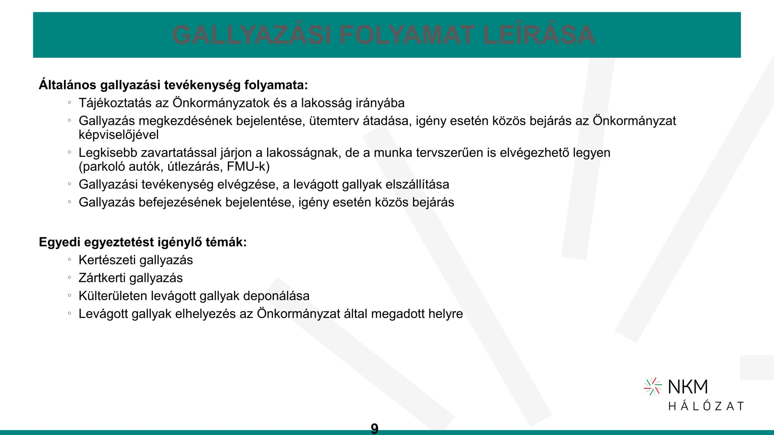 Nagy,- Közép,- és kisfeszültségű szabadvezetéki hálózatok nyomvonalai mentén végzendő gallyazási munkák Okányban: A munkakezdés várható időpontja 2020 október hónap.
