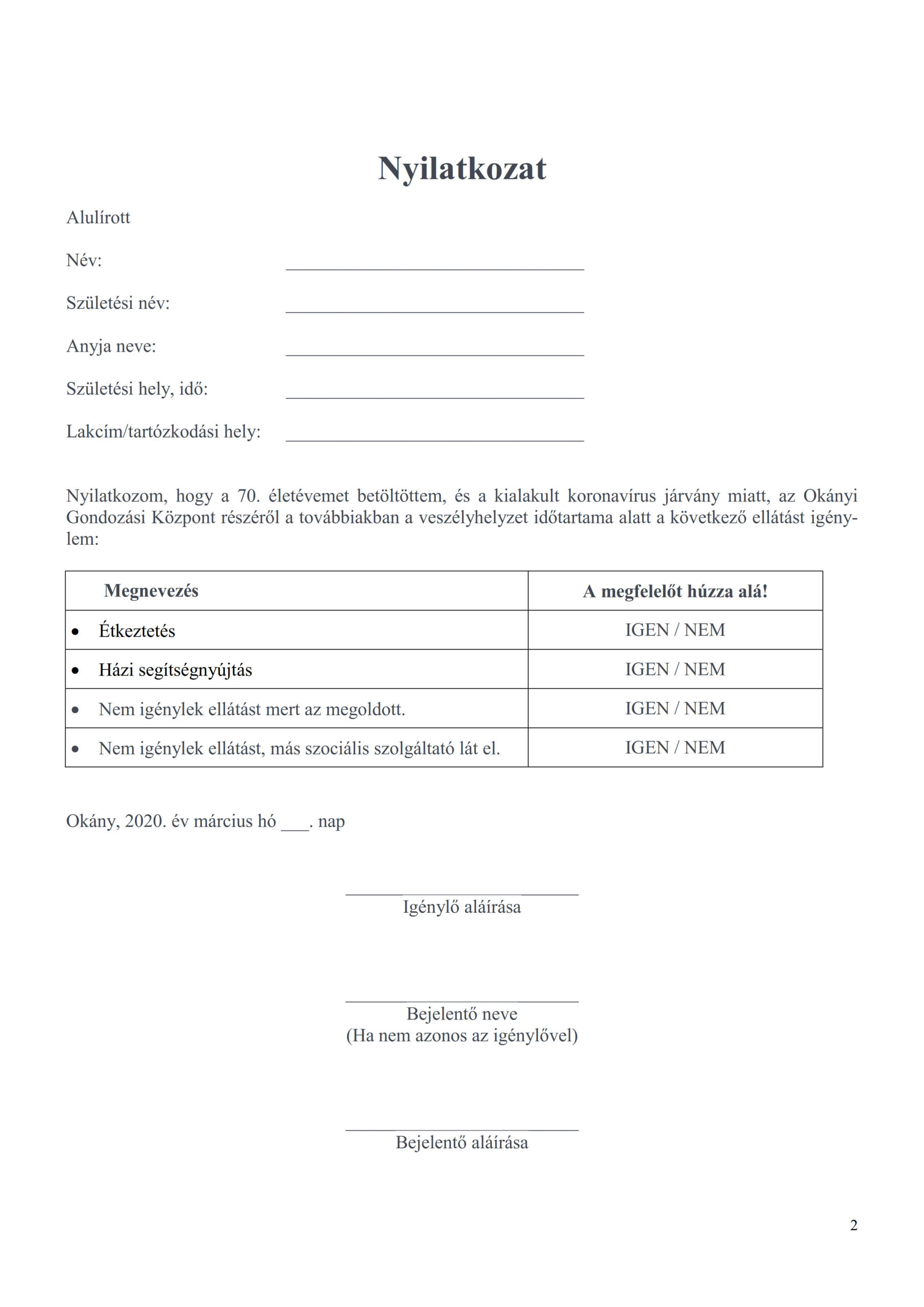 Kormány 46/2020. (III.16.) Korm. rendelet alapján közlemény
