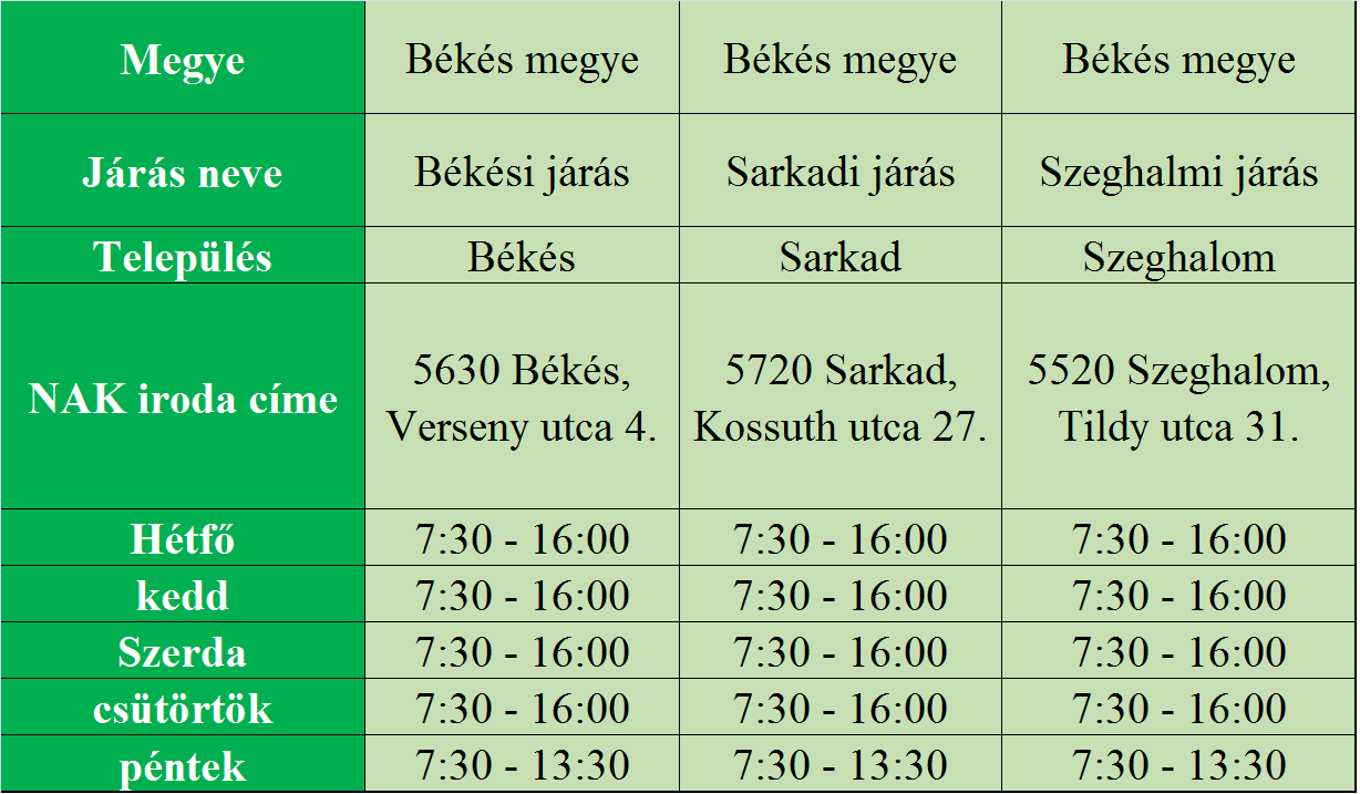 Jelenleg Sarkadon, Békésen és Szeghalmon van ügyintézés, a kitelepült irodák zárva tartanak!