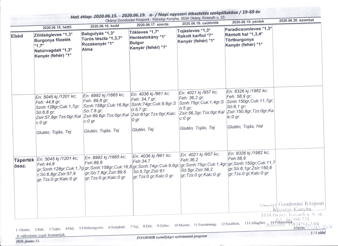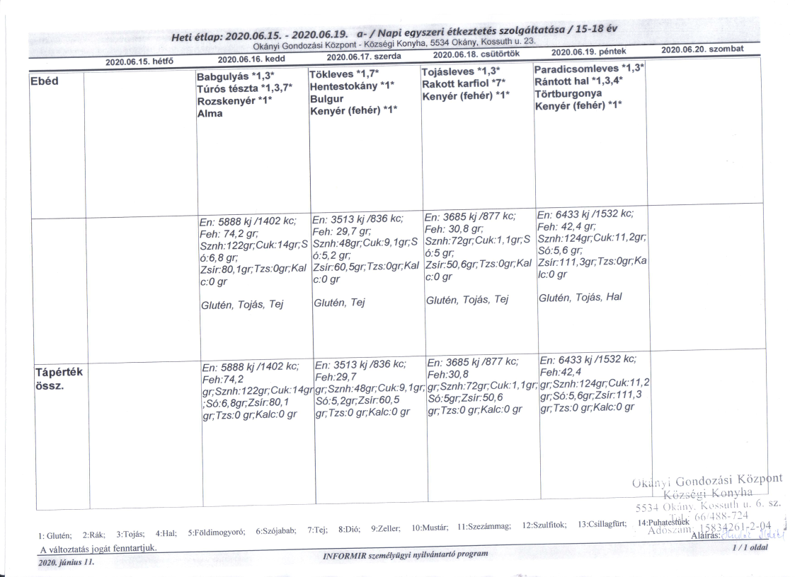 Konyha Étlap korosztályos bontásban 2020.06.15. – 2020.06.19.