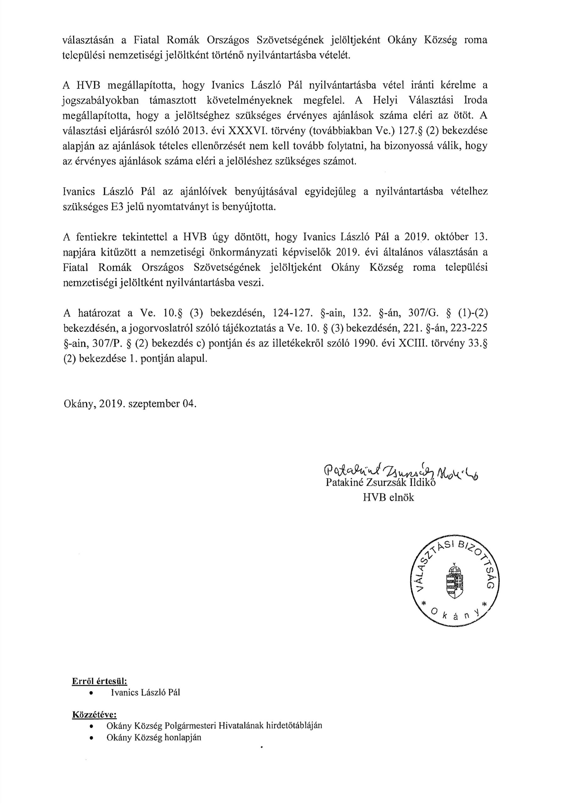 Ivanics László Pál nyilvántartásba vétele