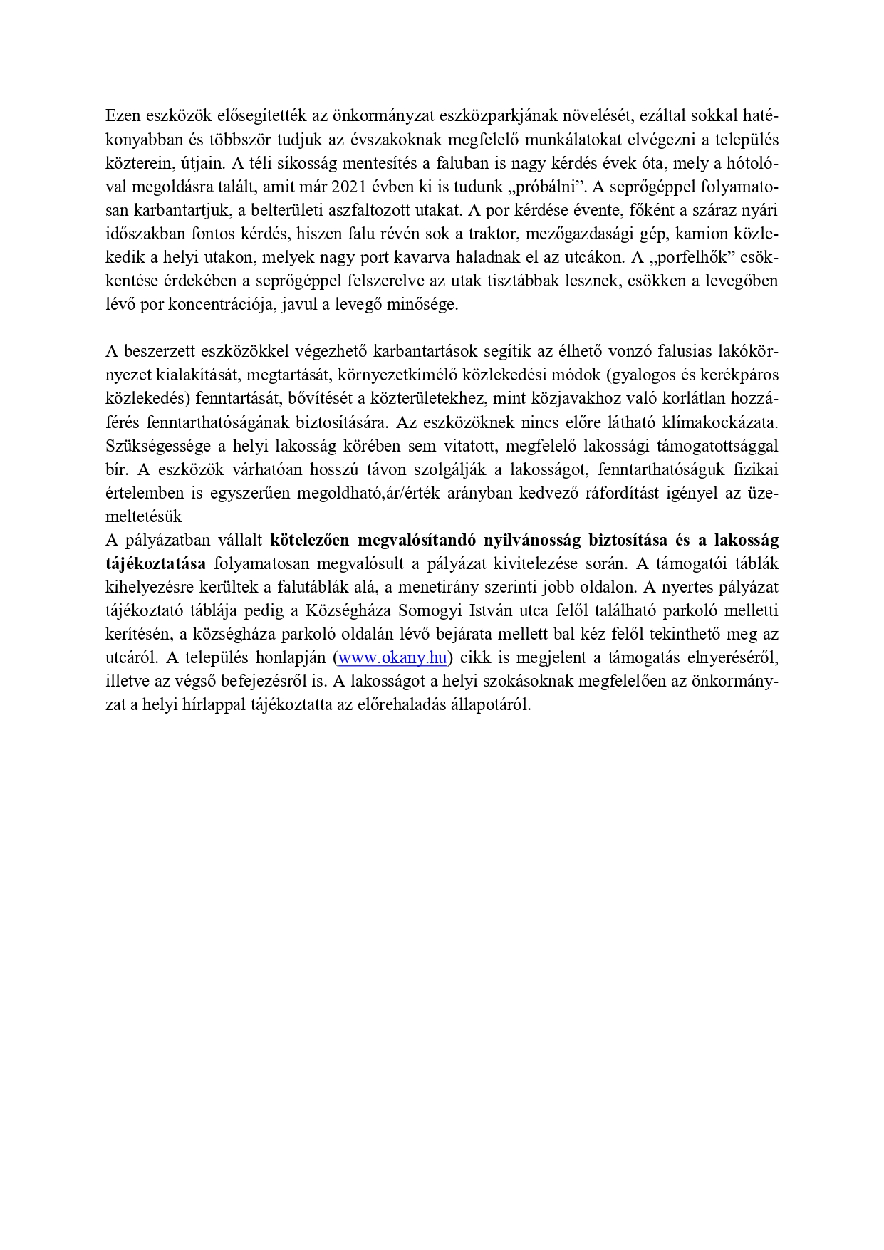 Tisztelt Okányi lakosok!
